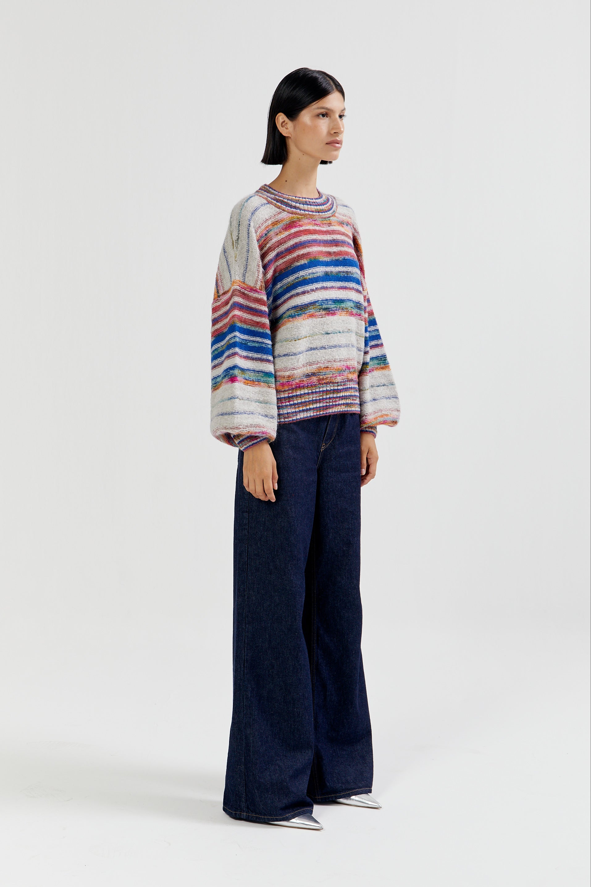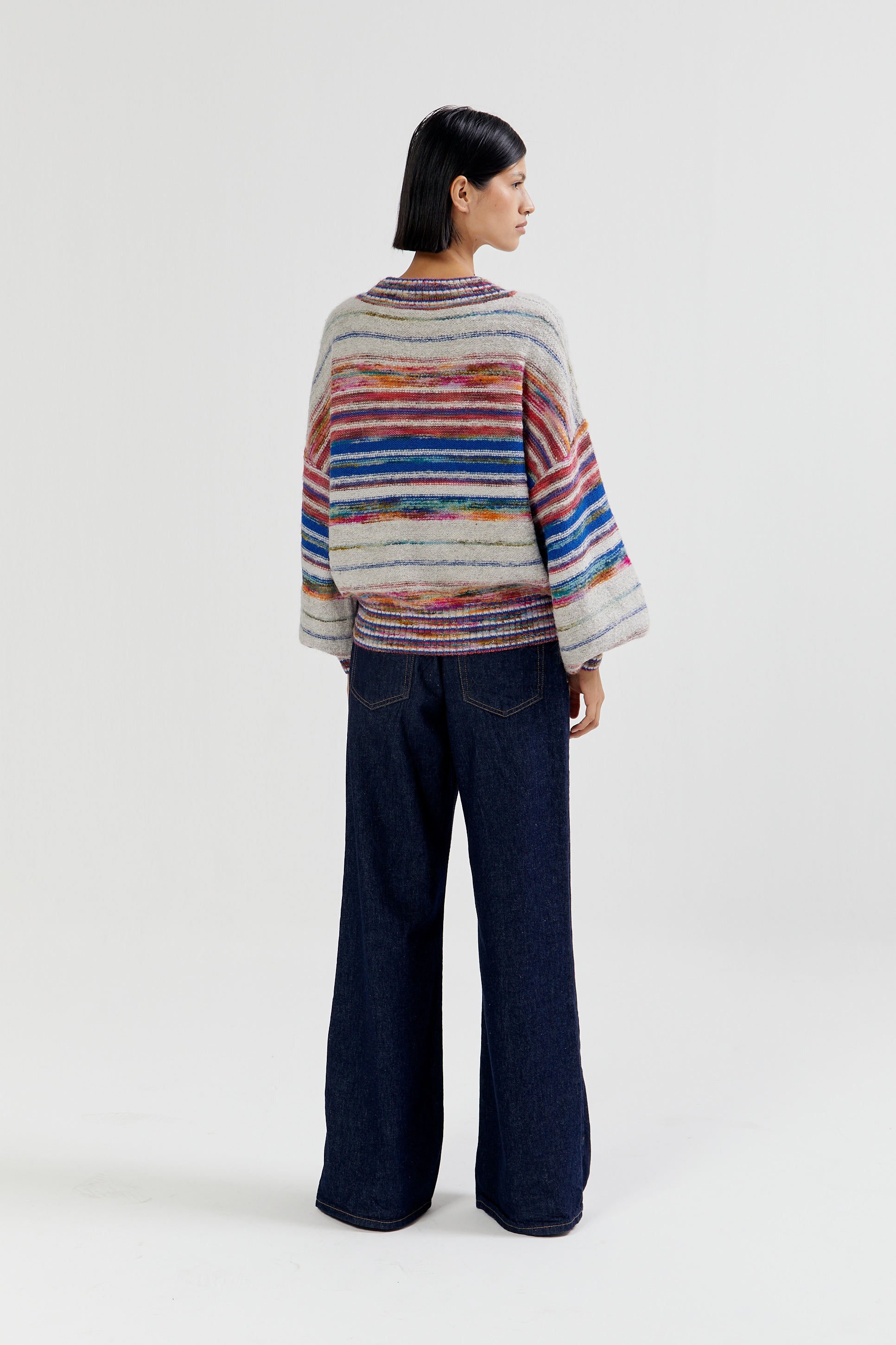 Mezcla de fibras naturales de Alpaca y lana con mucha texturas y mangas modernas