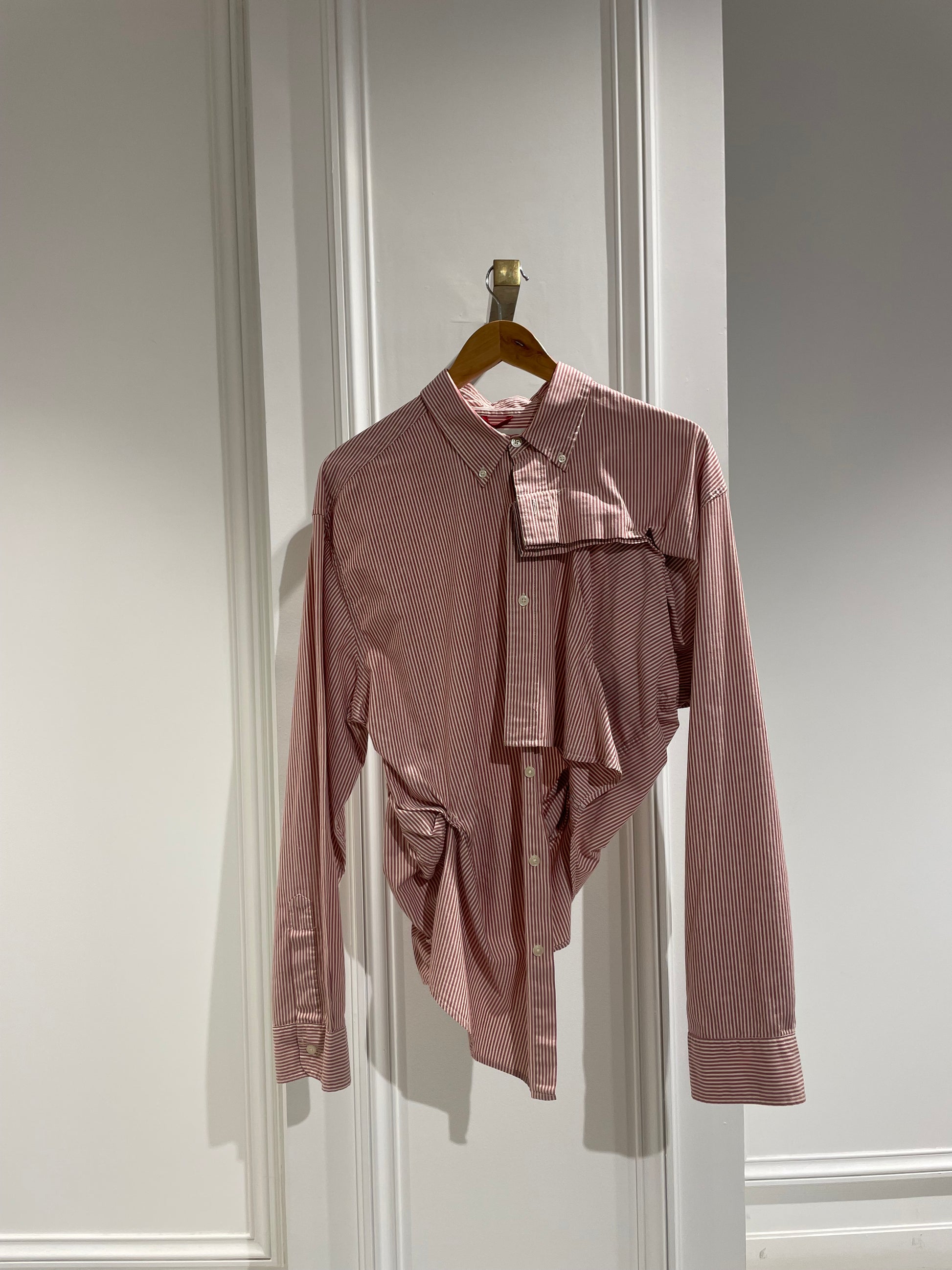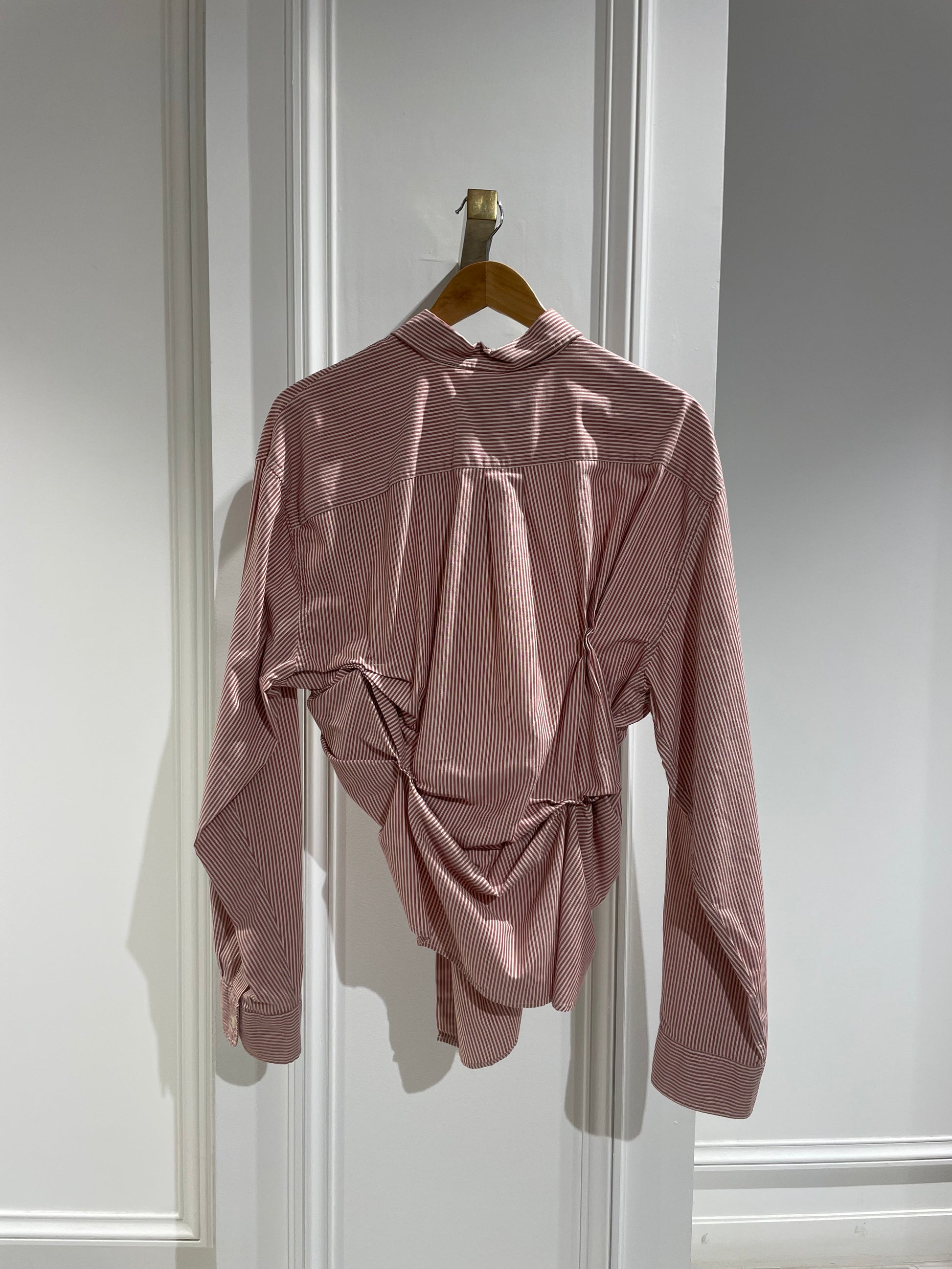 One of our favorite shirts. It features three pleats on the front and small gathers at the back, creating a unique and interesting shape.