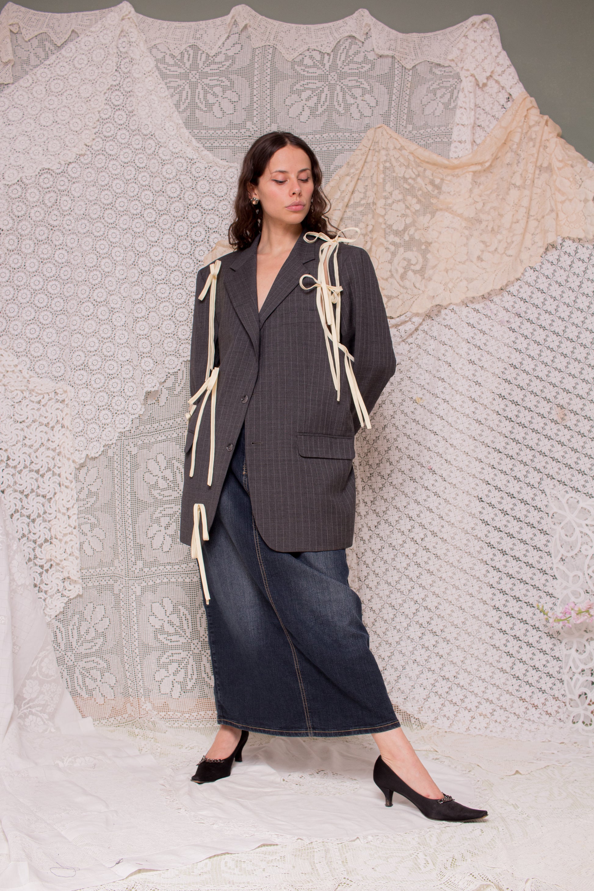 One of a kind of blazer. Inspired in typical Mexican aprons. One of the Banzo’s kind of deconstructed from a pre-existing garment, this piece is unique and genderless thanks to its boxy oversized fit.