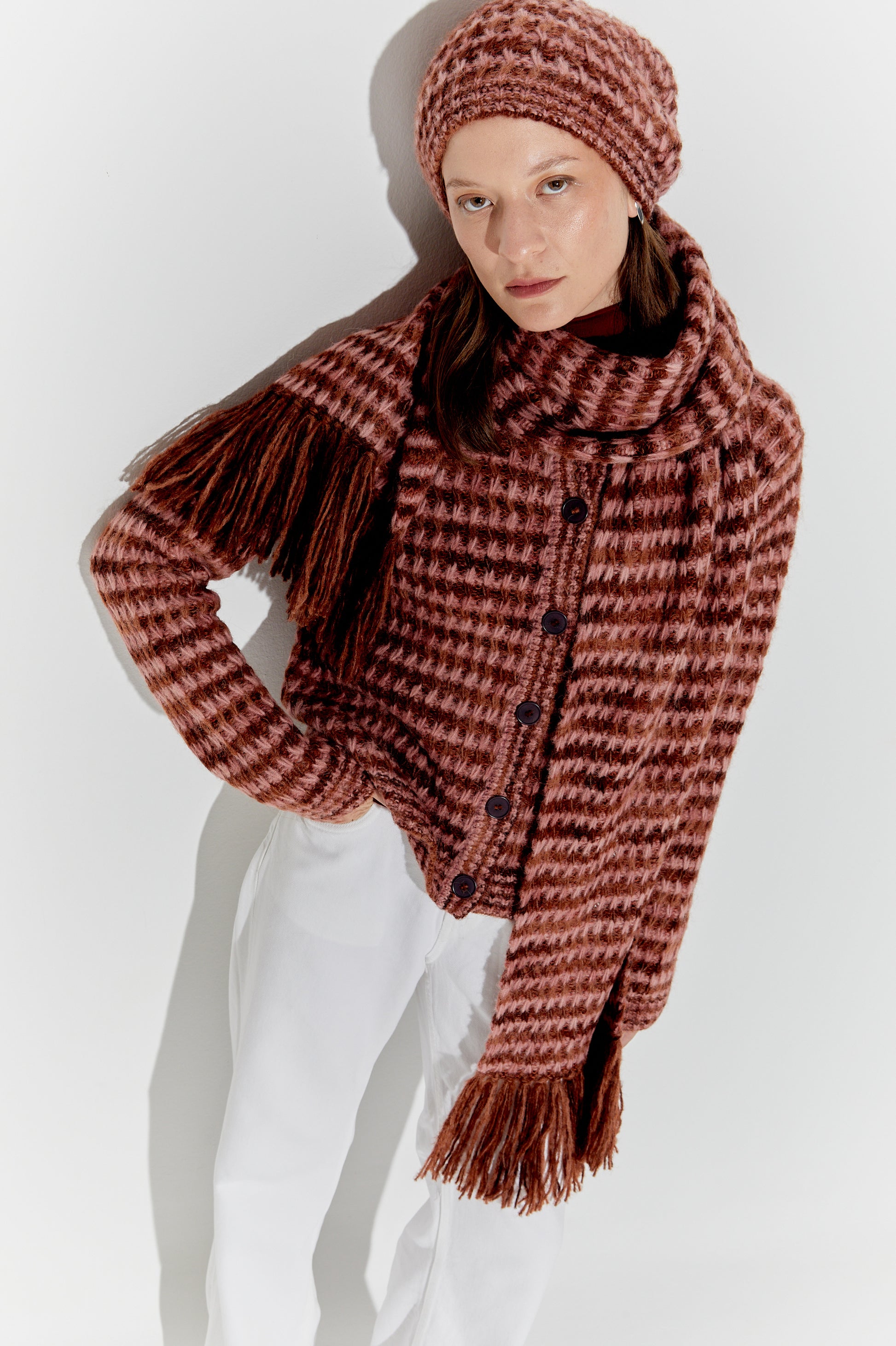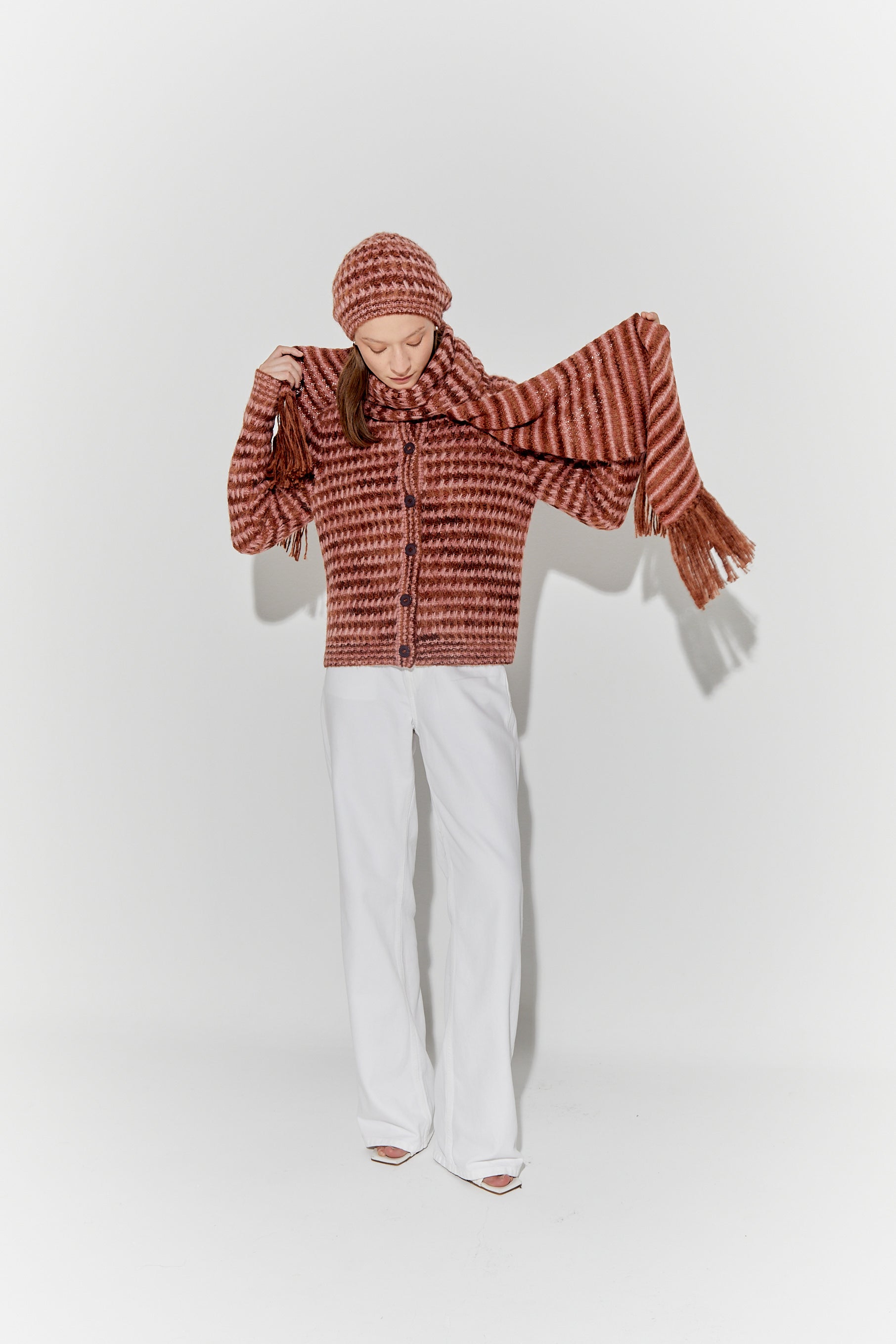 Gorrito con fibras naturales teñidas a mano brushed inspiradas en colores peruanos