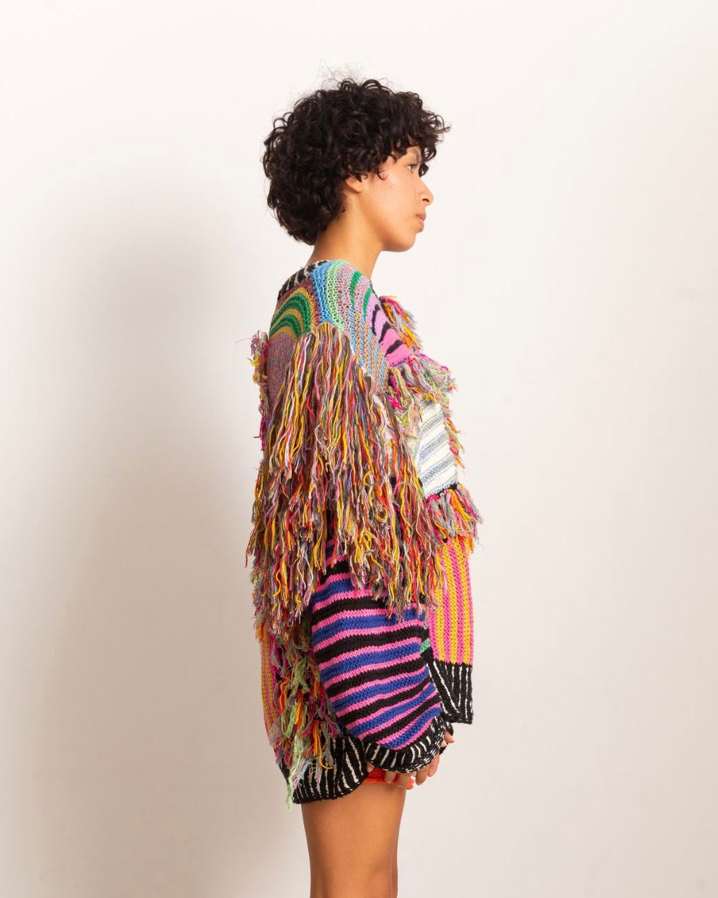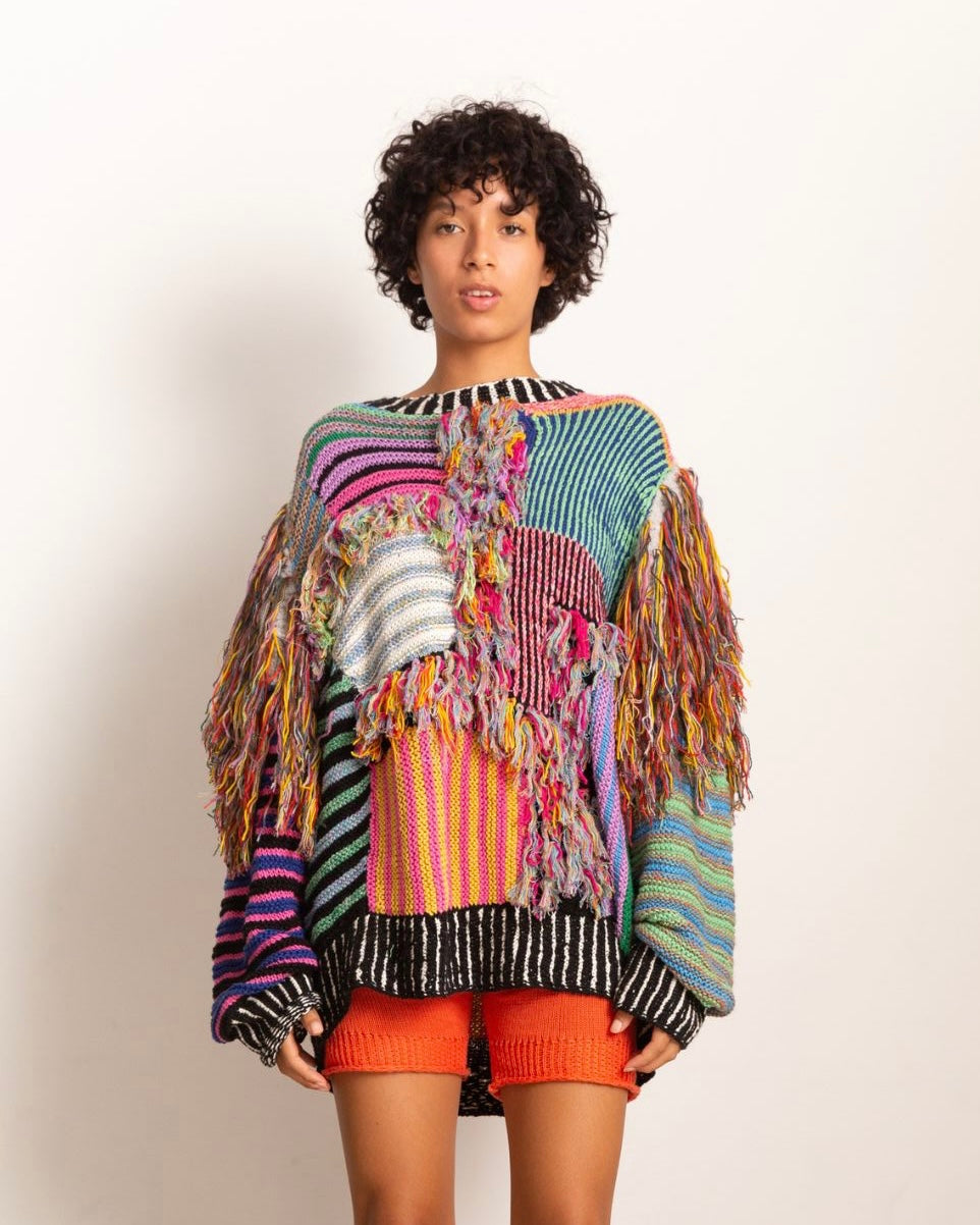 CJUNO is a Peruvian experimental brand. Each garment is woven with dead stock textiles.