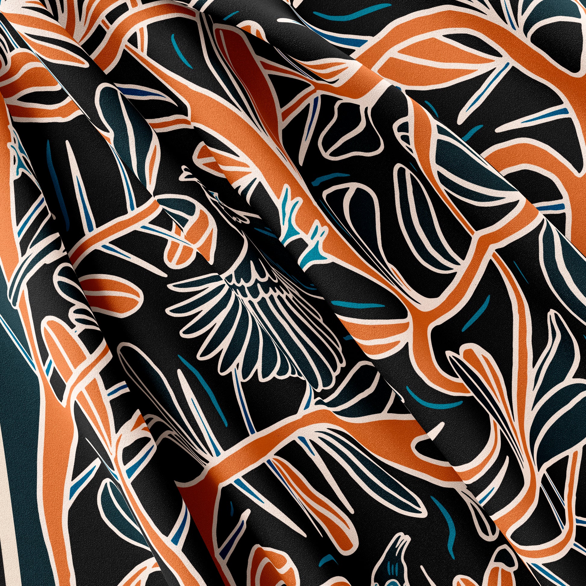 A Gauderia piece begins with hand drawing, which is printed on natural fabrics and fibres, such as silk, wool or cotton, and is carefully finished and packaged by hand, seeking the highest quality in each process.