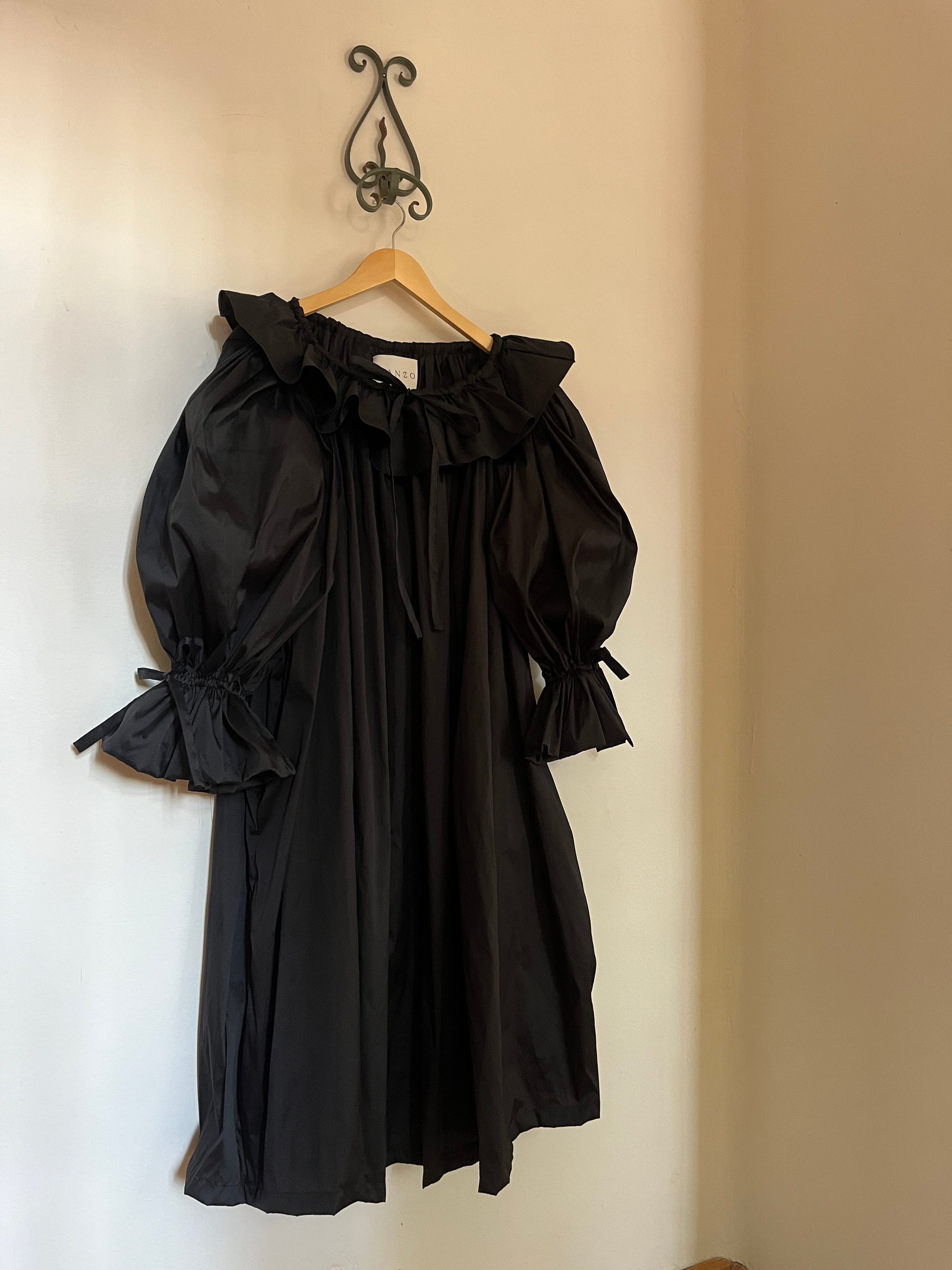 An adorable dress. Peter pan collar. Romantic sleeves with bow ties.