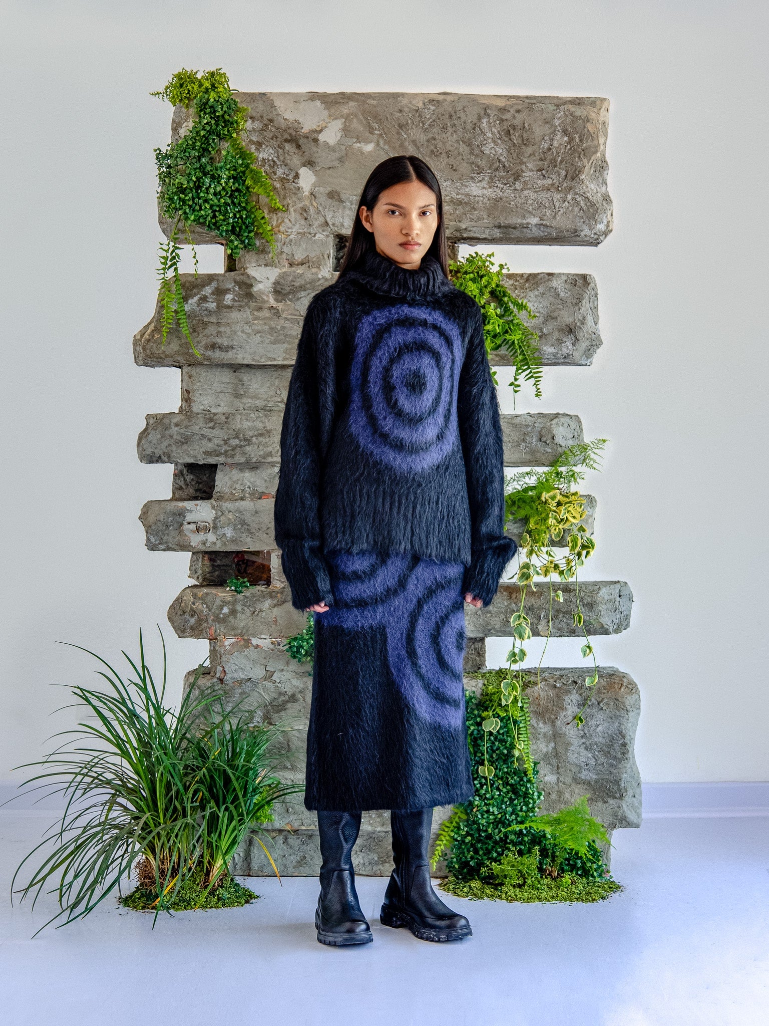 Mozhdeh Matin is a line of artful wardrobe compositions established in the spirit of community, heritage and artisanship. Born in Peru to Iranian parents, Matin’s aesthetic is informed by a soothing chaos framed in the nature of chromatic senses, gentle silhouettes and surprising textures. Thoughtfully manufactured in Peru since 2008, Matin’s creations come to life through traditional Peruvian weaving and knitting techniques energized with a sense of modern sophistication and textile experimentation. The promise of the luxury label is reaffirmed by the preservation of ancestral crafts woven into a contemporary design perspective fuelled by modernity and innovation; connecting the past to the present for future generations.