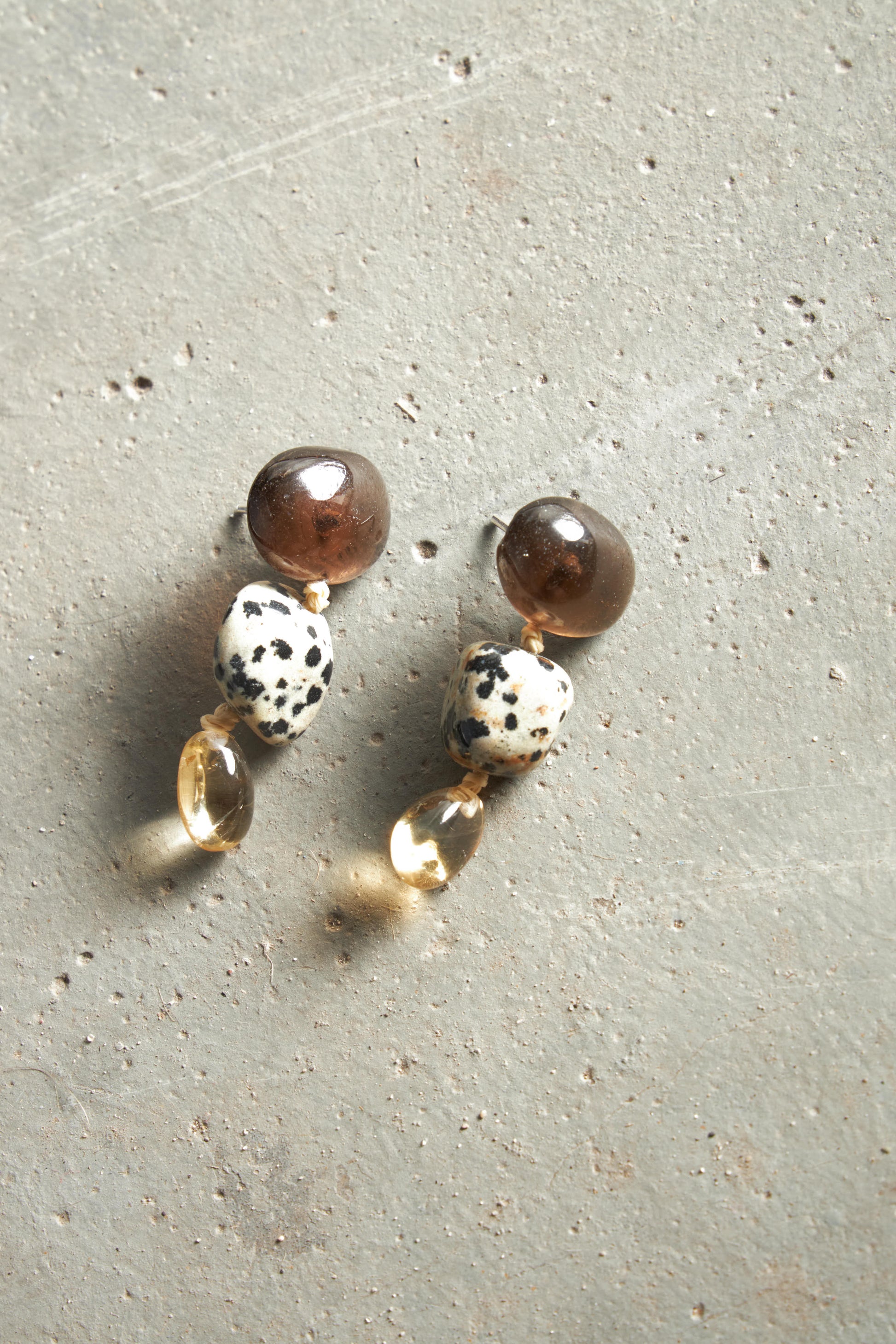 Dalmatian Jasper, Citrine & Smoky Quartz Earrings - Bruta