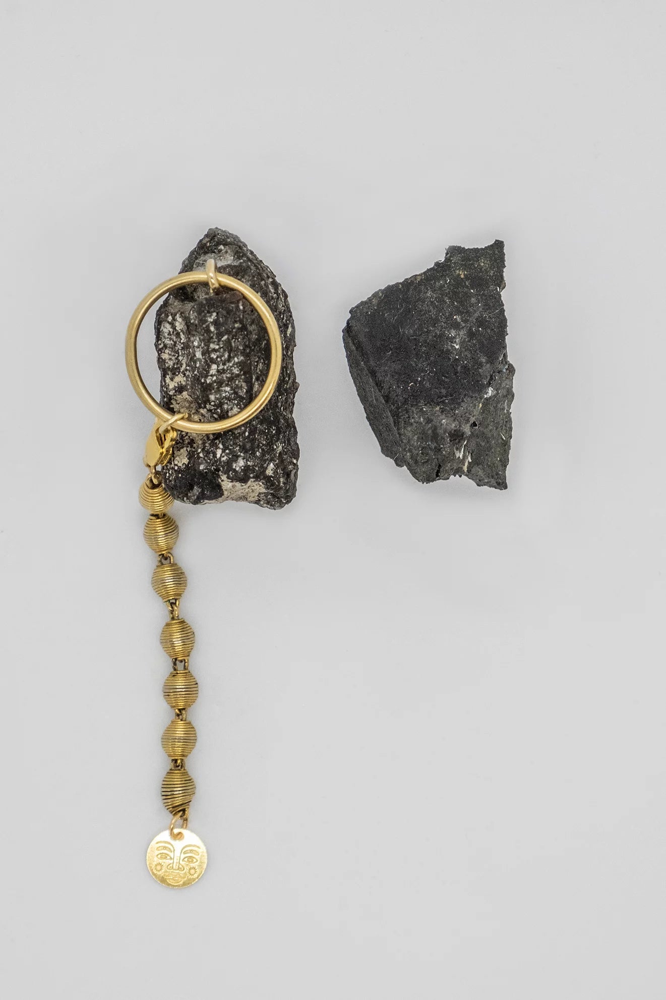 Poetry is born from the apparent weight of the stone, yet it seems to float at the tip of the ear that wears it. Each stone is chosen for its weight and each pair is created to find the right balance between each of the earrings without weighing down the earlobe.