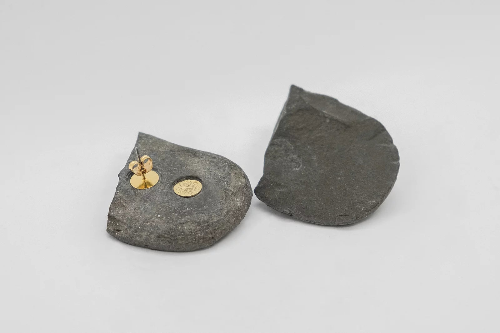 Earrings composed of two stones collected in a rock garden near Zitacuaro, Michoacán state, Mexico.