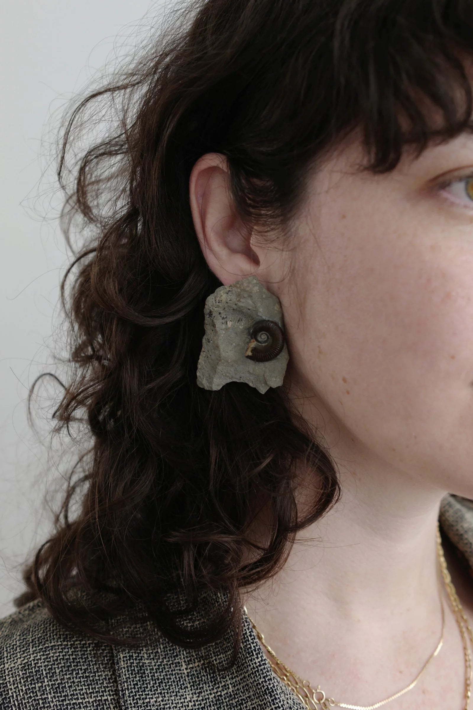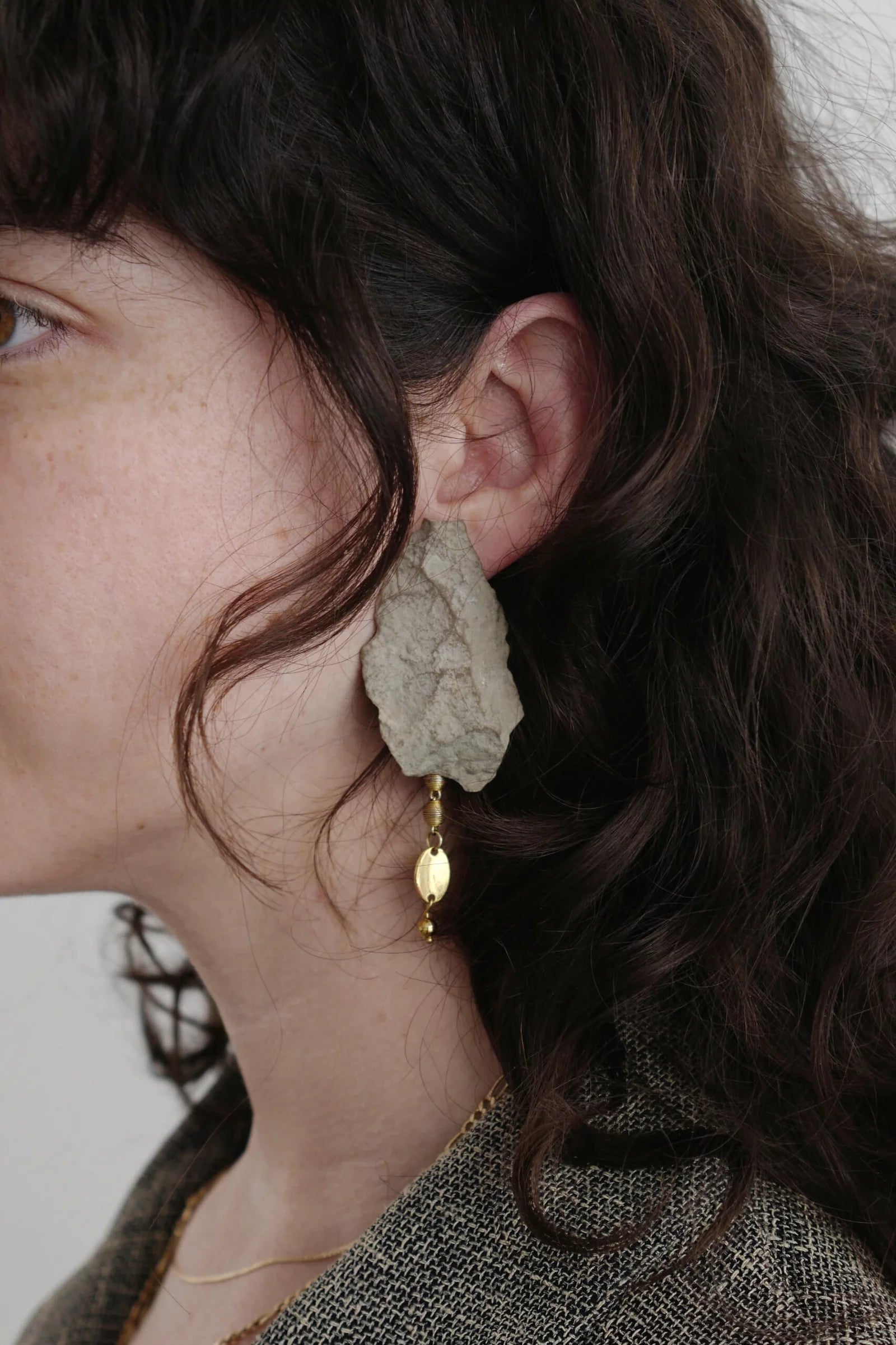 Earrings composed of two stones collected in a rock garden near the Gulf of Morbihan in Brittany. These unique pieces are designed and handmade in Paris. Care instructions: avoid contact with liquids (water, perfume, beauty products…), avoid shocks, wipe dry with a soft cloth.