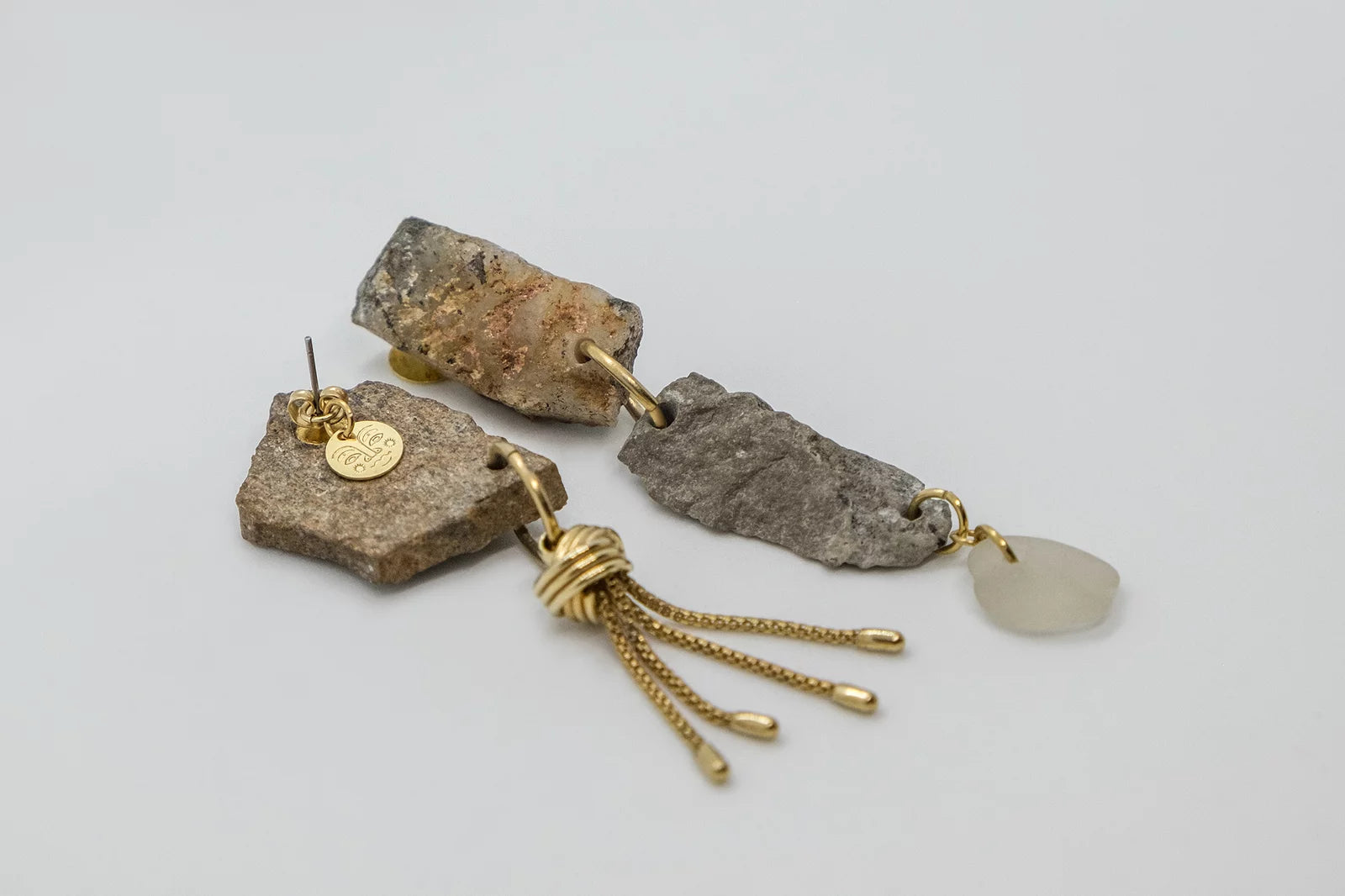 Poetry is born from the apparent weight of the stone, yet it seems to float at the tip of the ear that wears it. Each stone is chosen for its weight and each pair is created to find the right balance between each of the earrings without weighing down the earlobe.