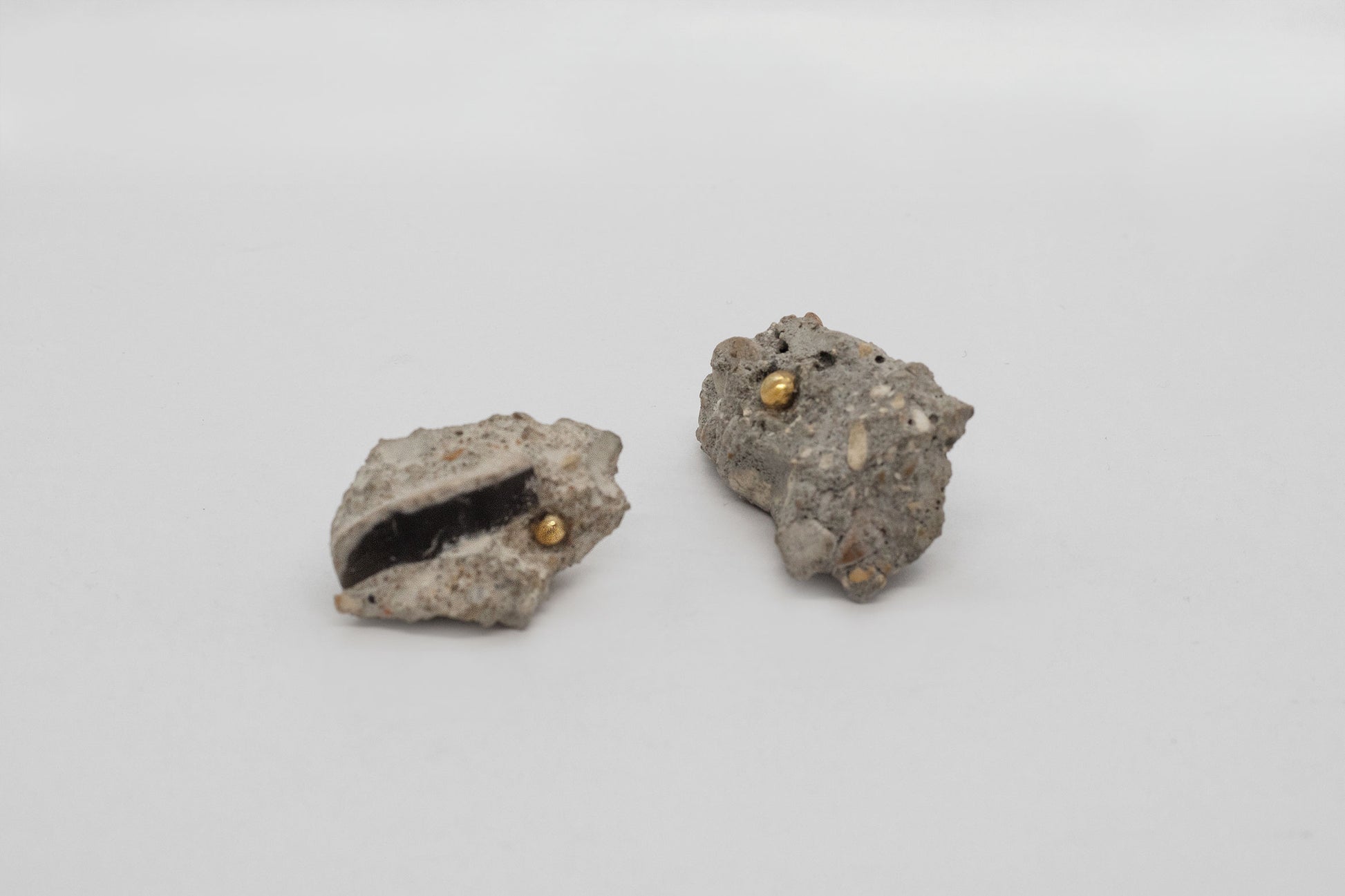 Earrings made from stones and objects gleaned in Paris since 2020, silent witnesses to this city, its evolution, its collective struggles and its individual histories. They are all fragments of objects or human constructions, returned to the organic state of pebbles. The fragments came from an open roadway in a street under construction. 24k gold-plated brass, nickel-free fittings from Bulgaria and Italy. Unique piece designed and handmade in Paris.