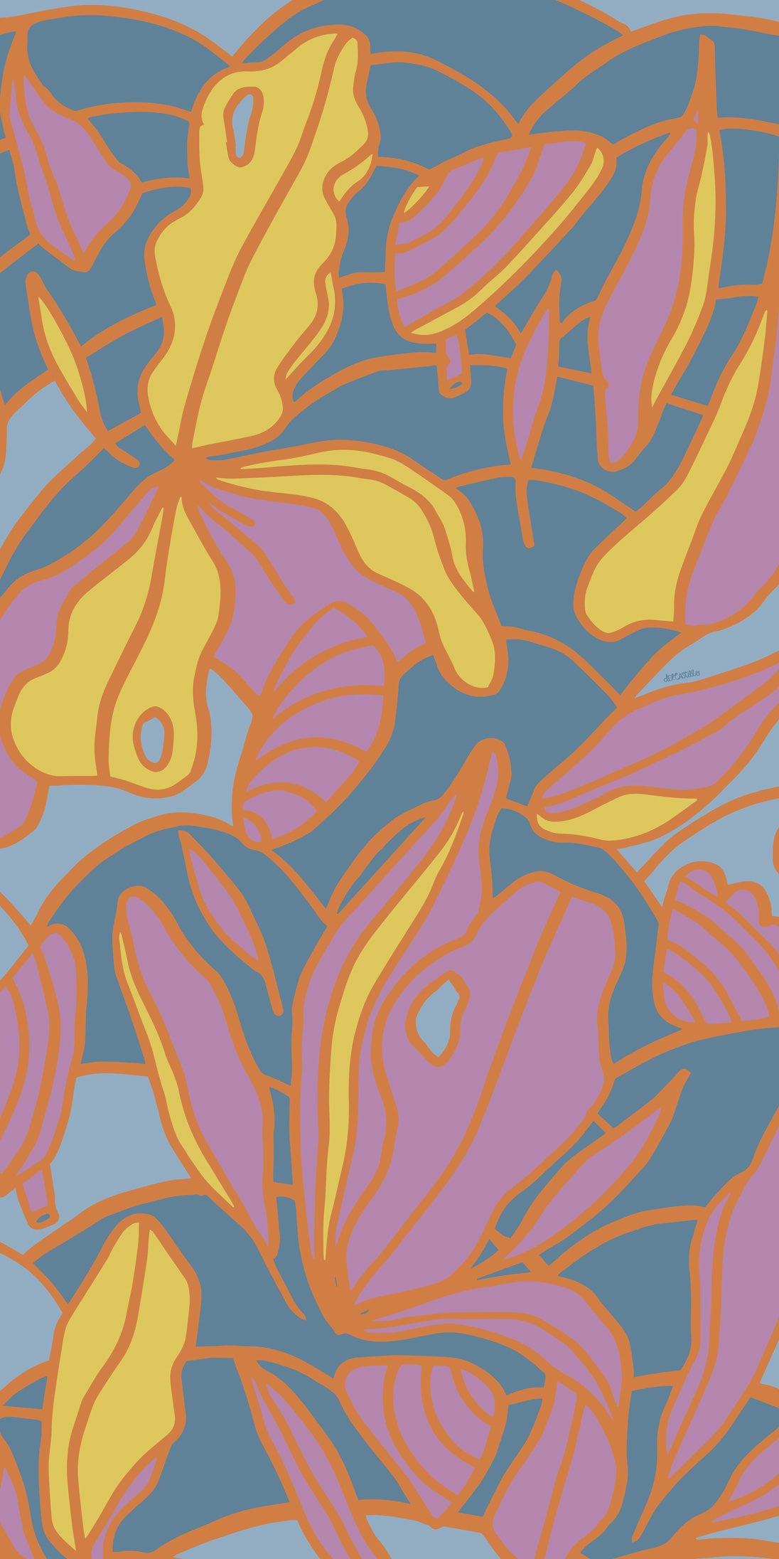 Sarong illustrated by the artist Serrana del Castillo Lussich with a motif of seaweed, mussels, clams and cockles, finished with a hand-made roulette.