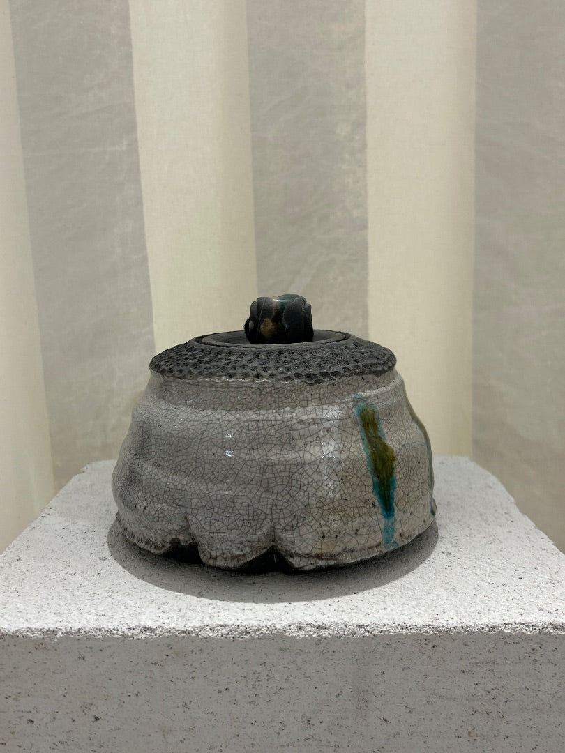 Handmade ceramic épi “gros” container. Base diameter 18cm. Height 11cm.