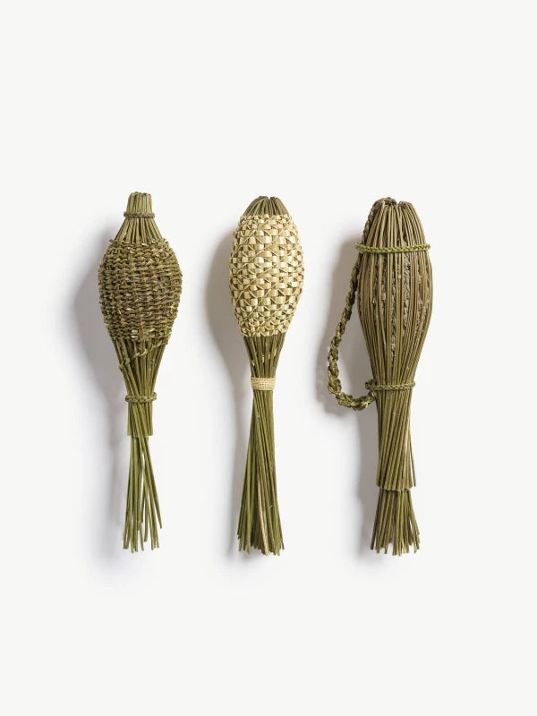 Fuseaux tressés à la main, déclinés en 3 version différentes.