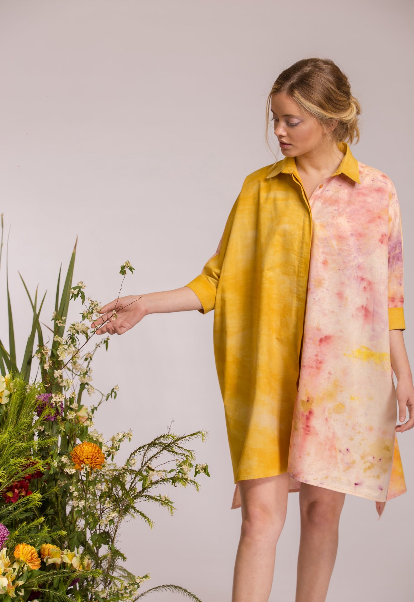 ”I’ve been a color lover since I can remember. In 2014, I decided to go deeper into that passion and so I went to New York to get a Color Specialist Certificate at FIT (Fashion Institute of Technology). It was then when one day, walking down the streets of my neighborhood in Brooklyn, I randomly bought a book that made me discover what it would later become my true passion: hand natural dyeing. This ancient technic allows me not only to work with color but also to create it with my own hands, without damaging our environment.”