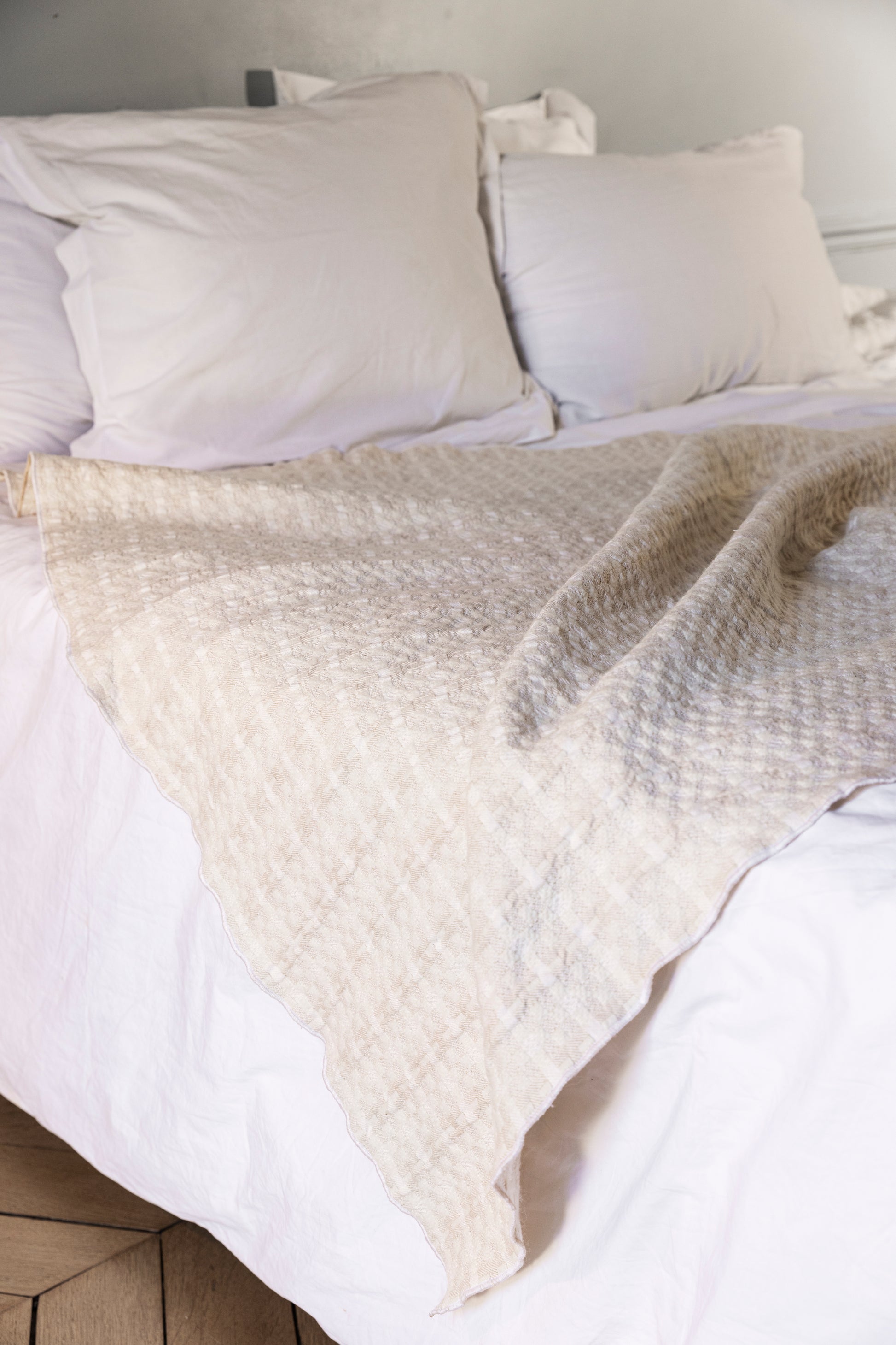 Justine Gaignault blends French and Belgian wool and linen to make elegant and tactile tapestries. An artist in residence at les ateliers de Paris, in the heart of Paris, Justine designs each piece on a hand loom which are later produced in a Jacquard Belgium company. She creates custom projects with interior designers and with interior her work is made on demand so there is no waste. In 2022, she joined the prestigious Bureau du Design, de la Mode et des Métiers d'Art support program.