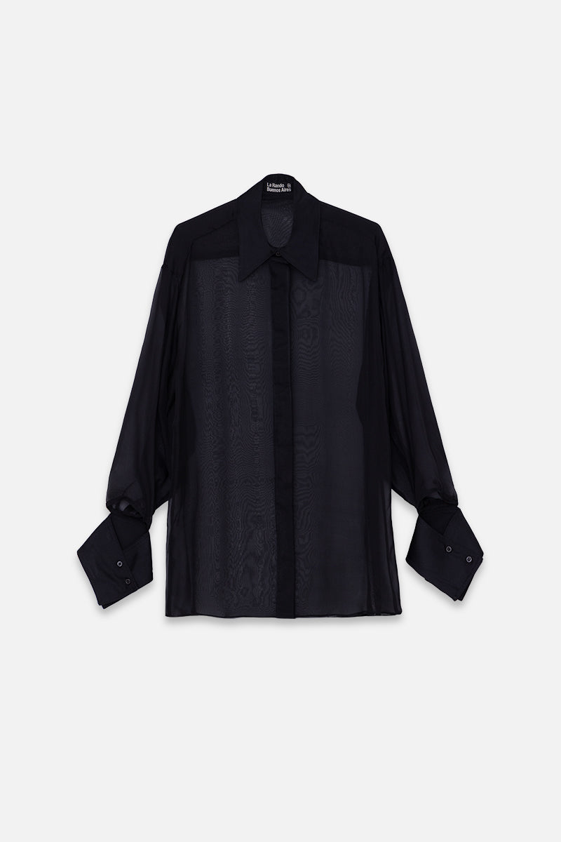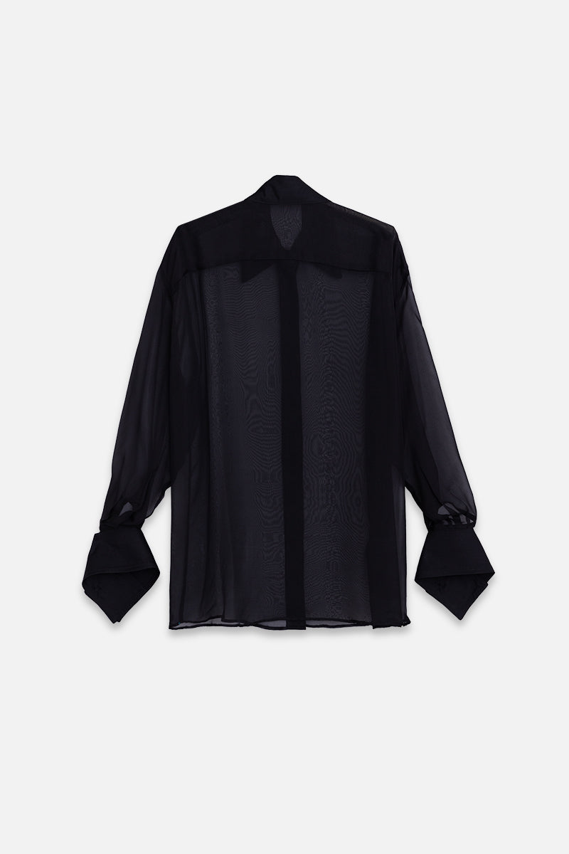 Crafted from natural silk, designed for a loose fit, with a pointed collar, dropped shoulders, concealed buttons and cuff detailing.