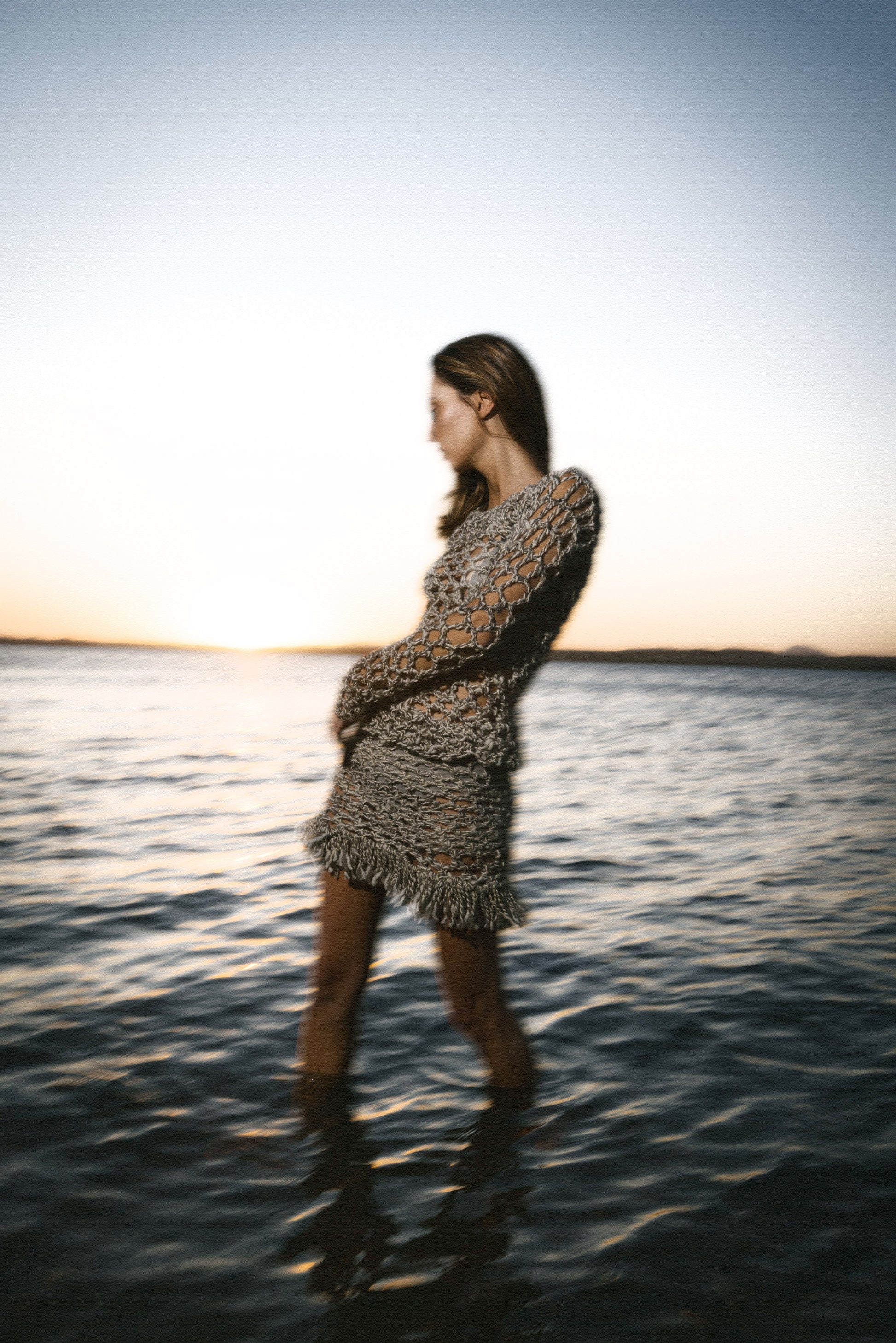 Part of the ”Crudo Collection”, hand-knitted sheep's wool long sleeves top.