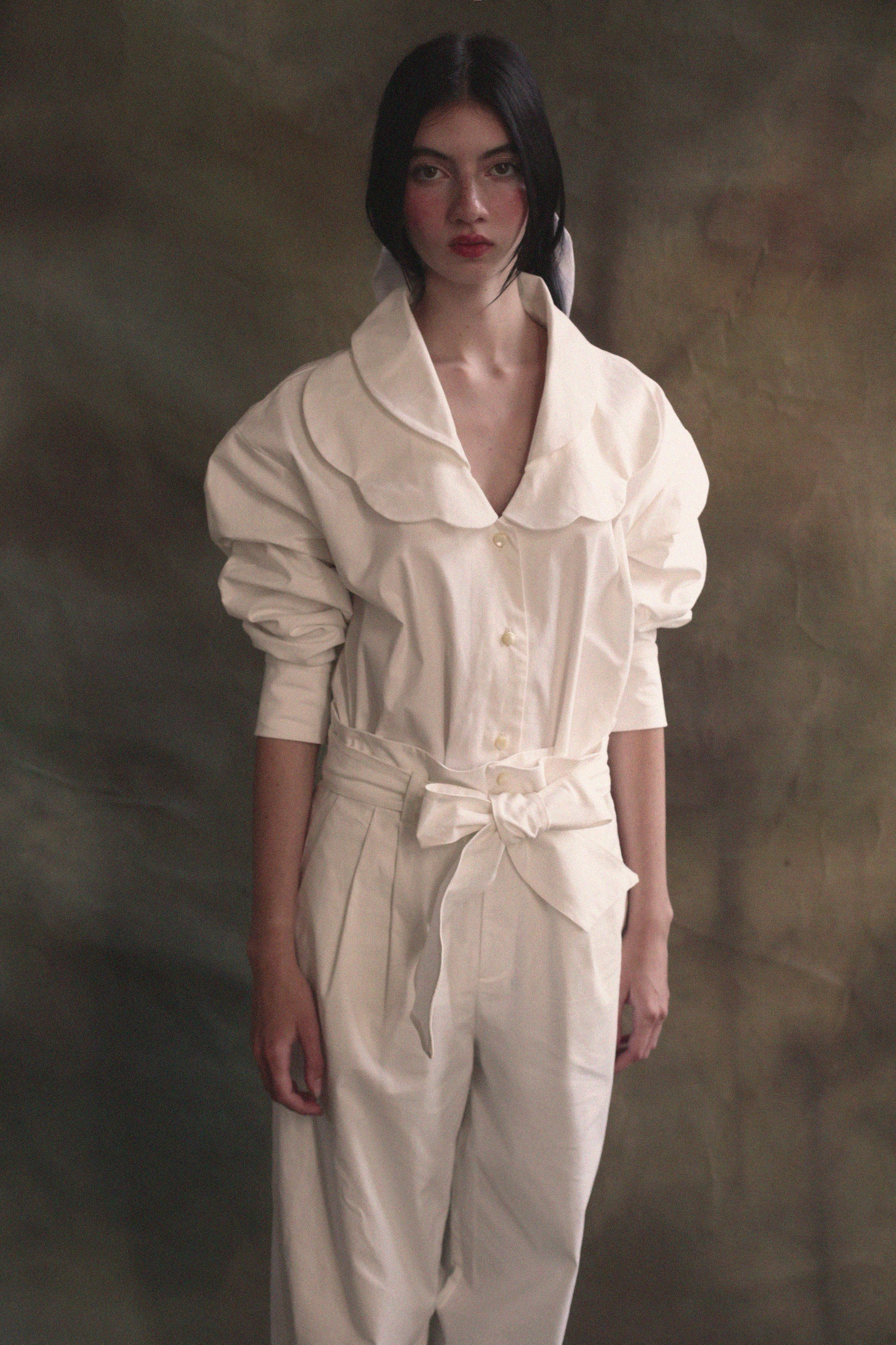 The pieces offer infinite meanings and a single glance is not enough to decipher them. In noble fabrics, shoots of the past, literature and works of art hide and reveal themselves. His clothes are the preludes to a personal universe that appears subtle, point by point, like dance steps that cross time and space, and are represented in exquisite harmony in the delicacy of his own signature.