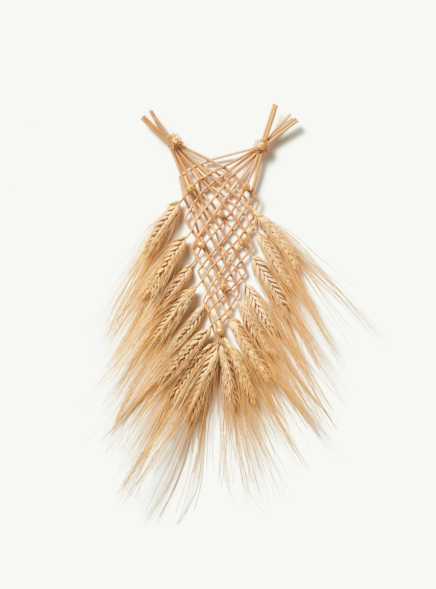 Emma Bruschi creates delicate jewelry, clothing and accessories using straw. She spins rye straw grown on her family land in Savoy with a spinning wheel, then braids, embroiders and crochets this rustic raw material to create finely detailed jewelry, accessories and garments. Her work is inspired by ancient folk techniques, folk art, agricultural clothes and traditional garments. Emma works with raw materials often perceived as invaluable and transforms them into priceless works of art that celebrate the vitality and richness of rural agriculture.