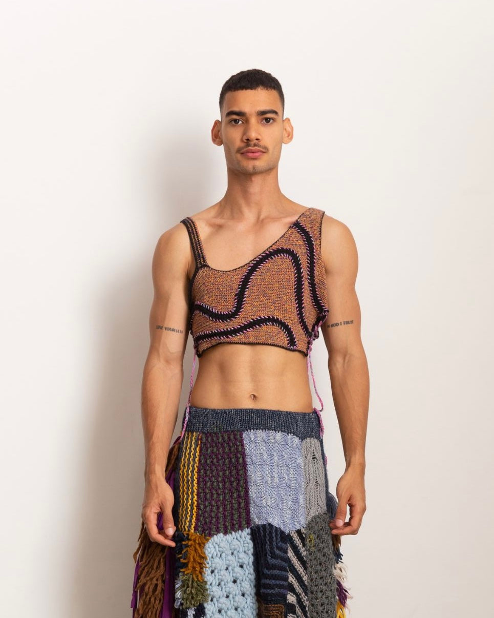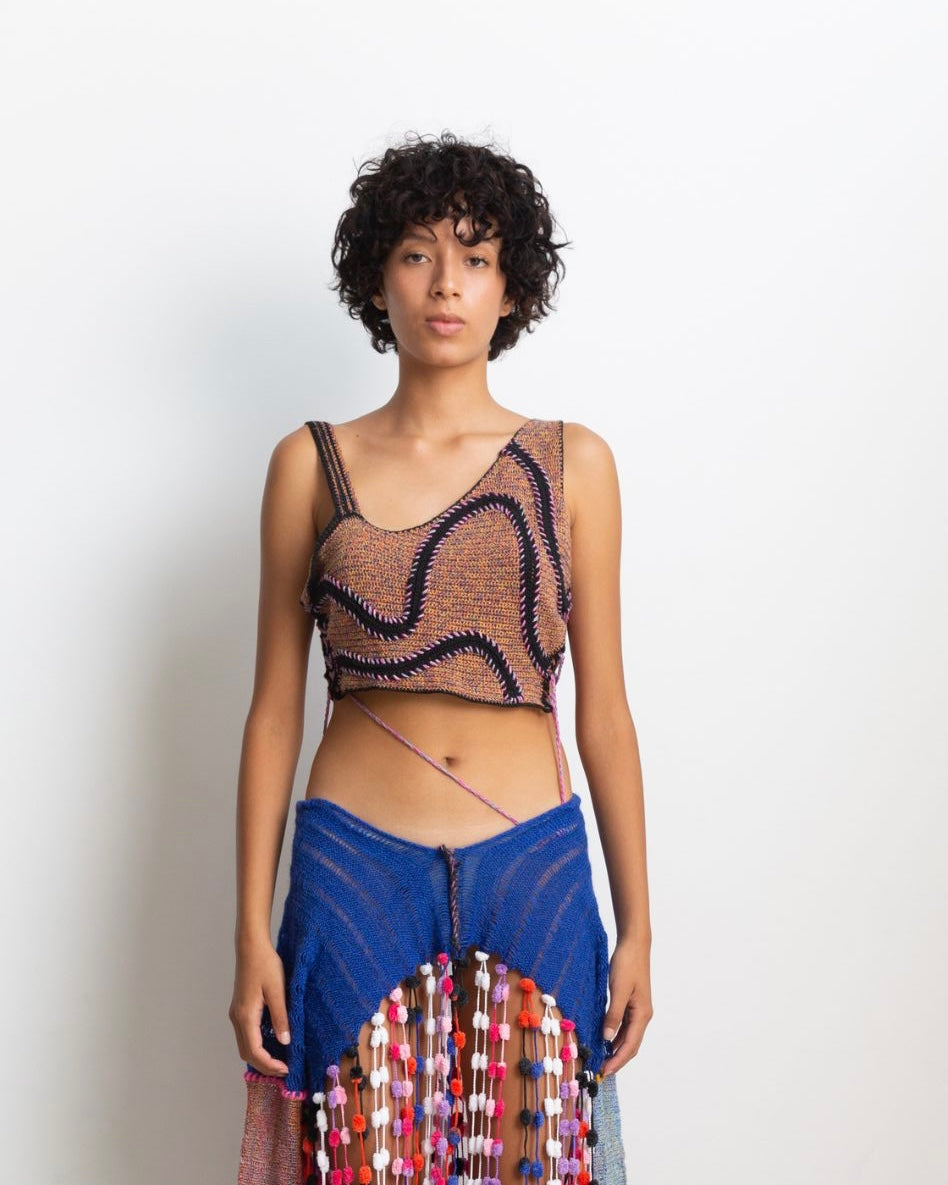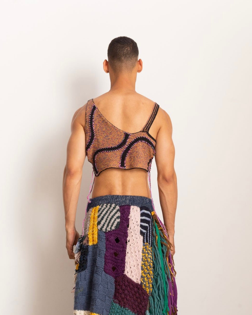 CJUNO is a Peruvian experimental brand. Each garment is woven with dead stock textiles.