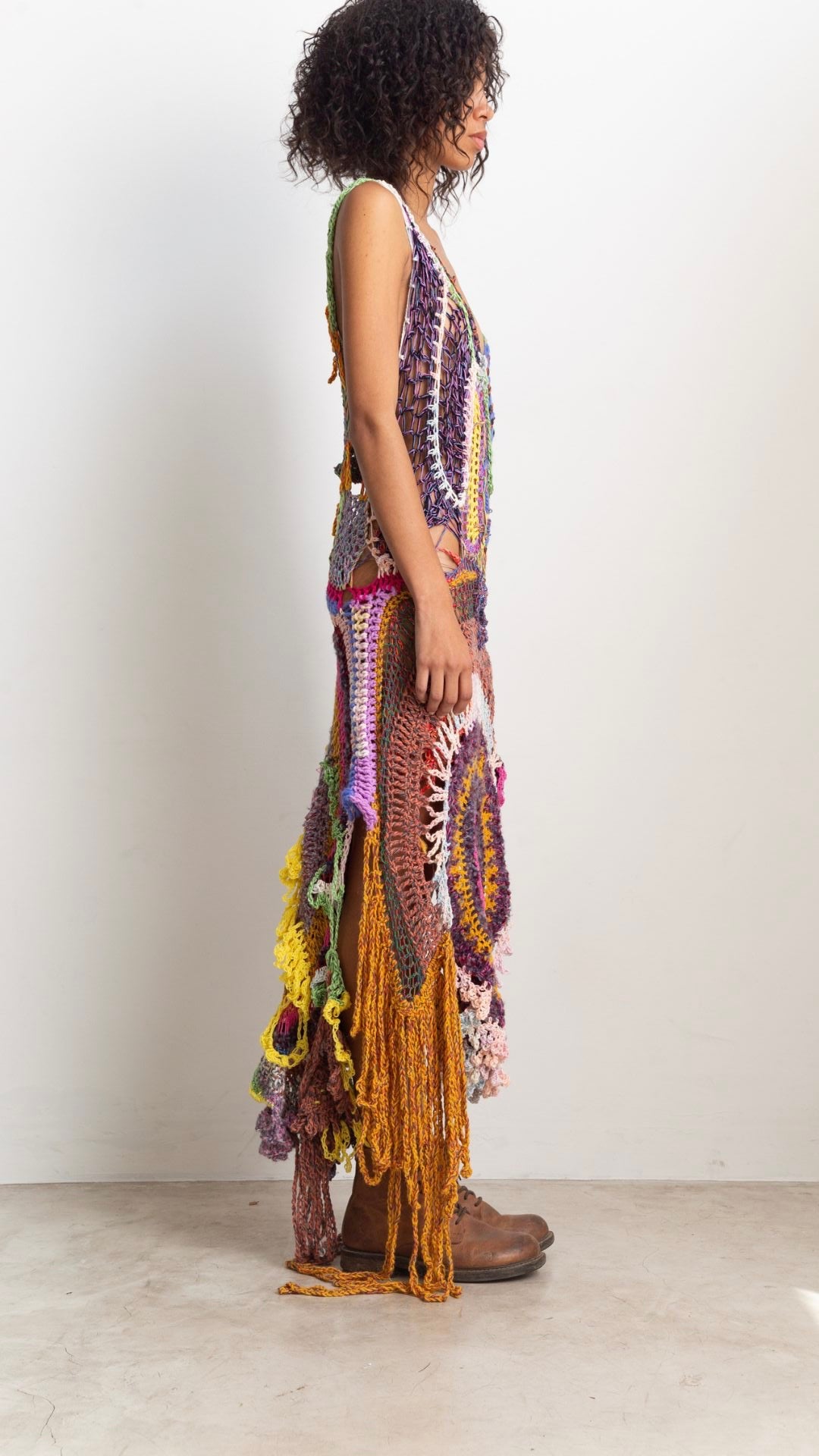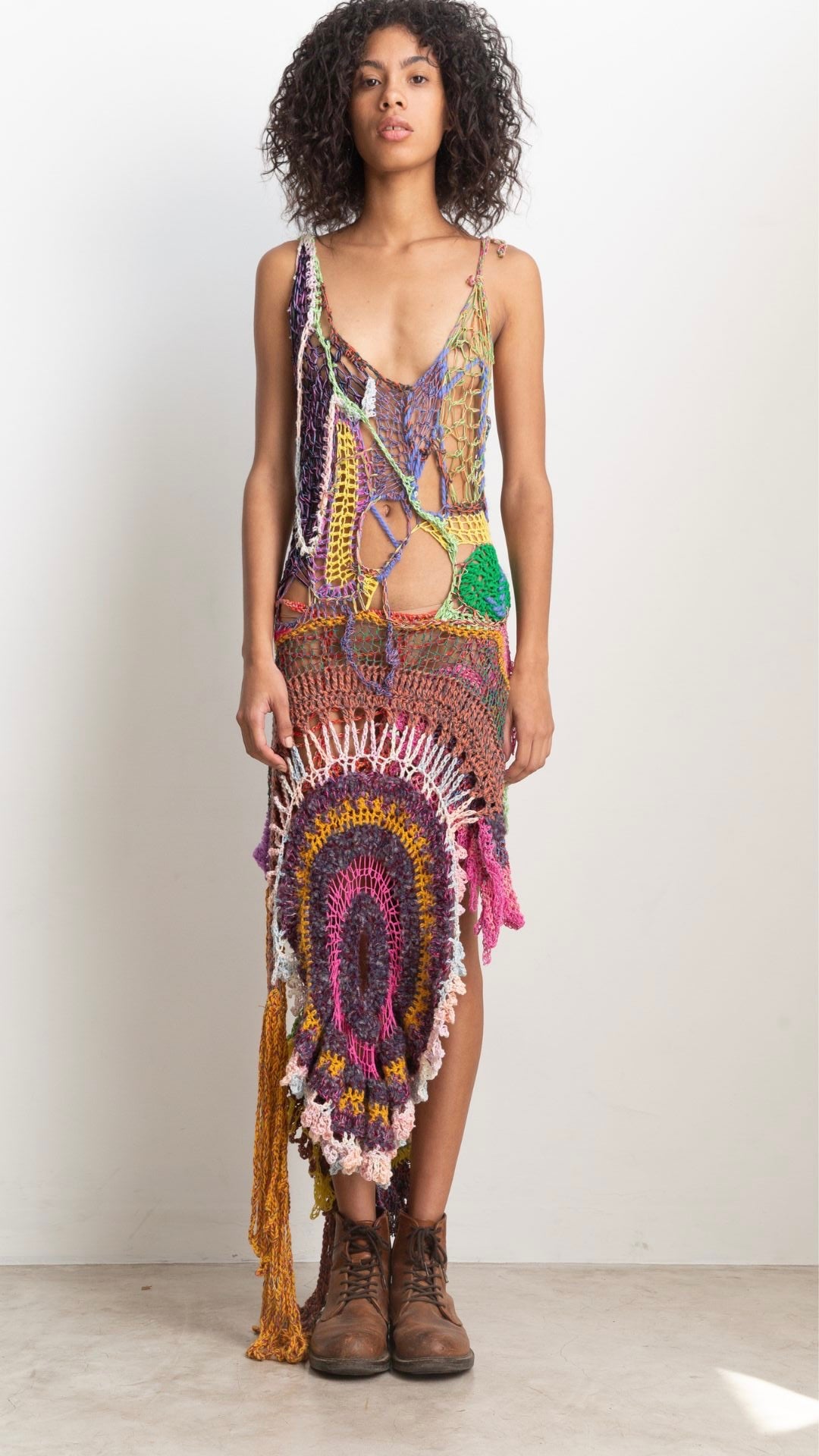 Hand knitted dress with different types of threads and techniques. Unique piece.