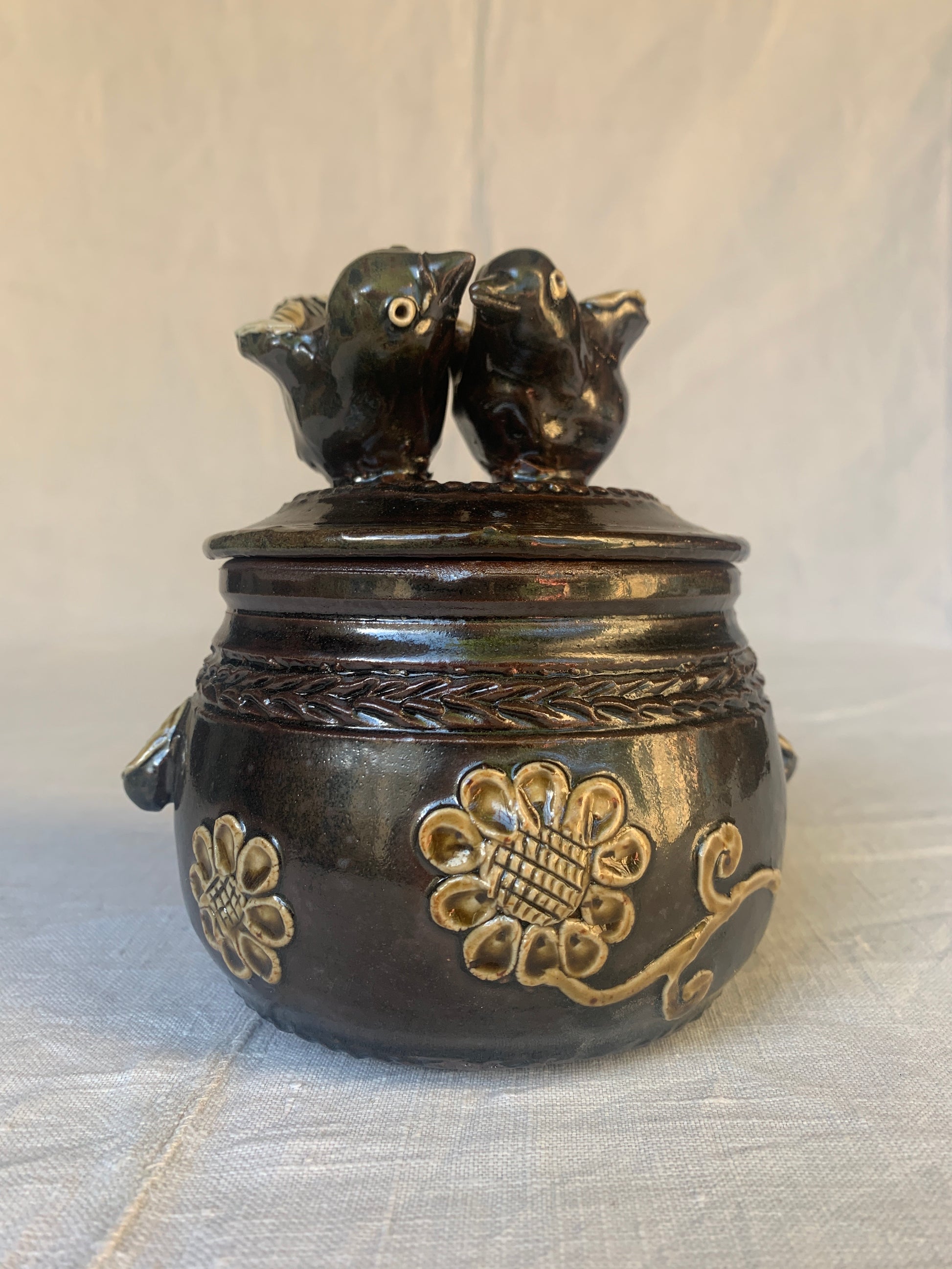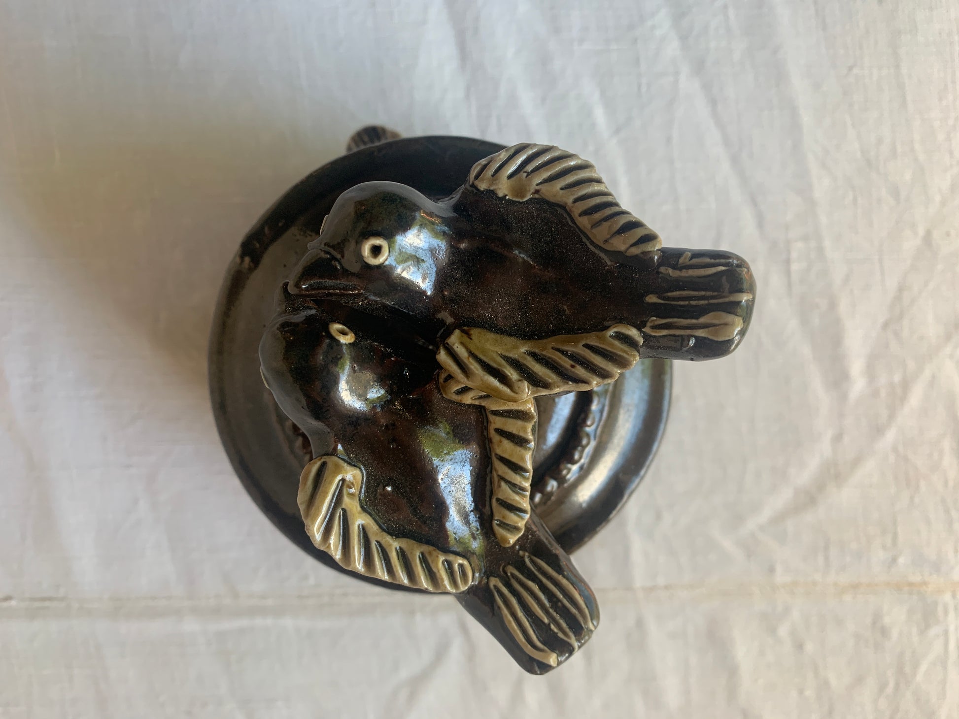 Brown glazed pitcher handmade. Unique piece.
