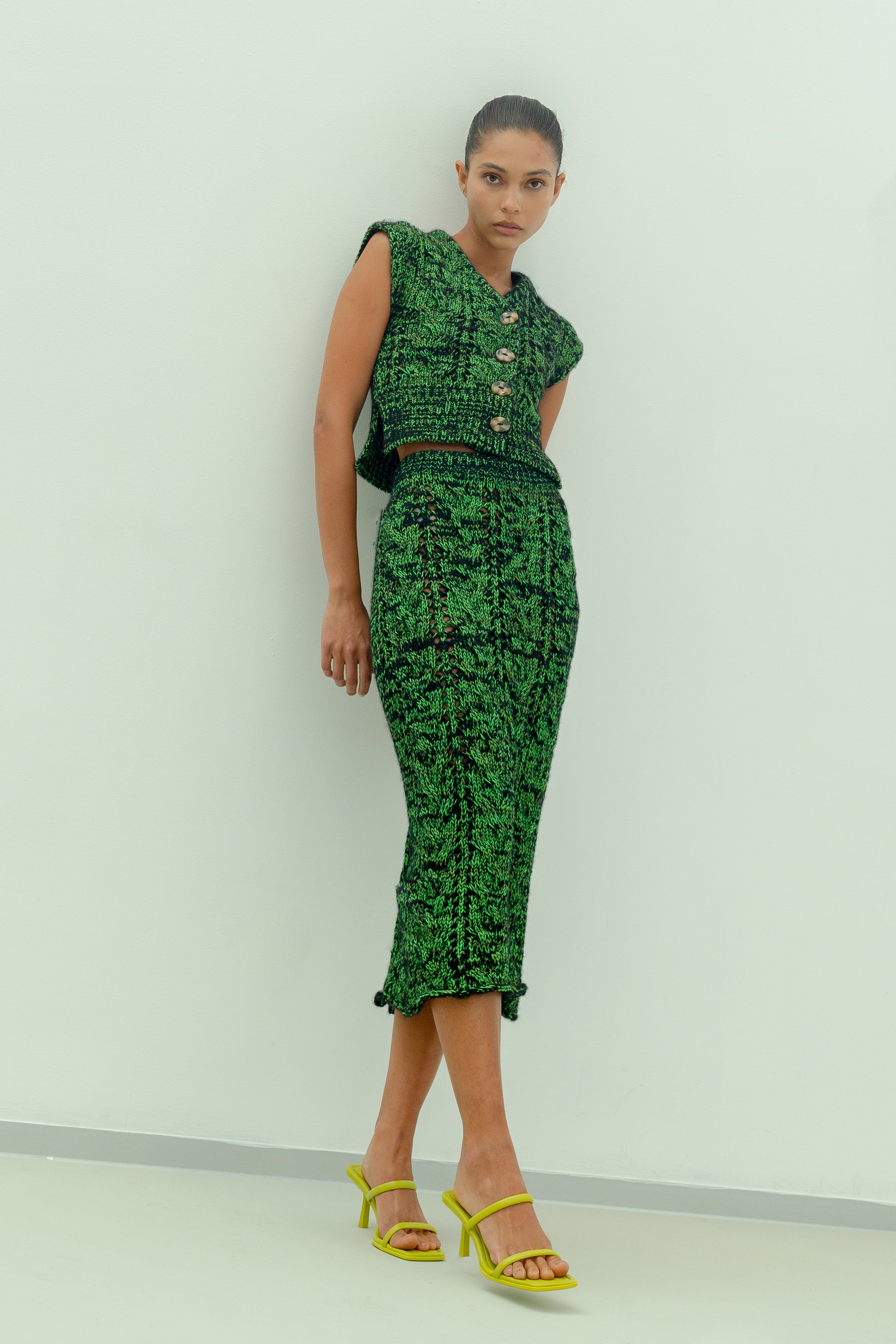 Mozhdeh Matin is a line of artful wardrobe compositions established in the spirit of community, heritage and artisanship. Born in Peru to Iranian parents, Matin’s aesthetic is informed by a soothing chaos framed in the nature of chromatic senses, gentle silhouettes and surprising textures. Thoughtfully manufactured in Peru since 2008, Matin’s creations come to life through traditional Peruvian weaving and knitting techniques energized with a sense of modern sophistication and textile experimentation. The promise of the luxury label is reaffirmed by the preservation of ancestral crafts woven into a contemporary design perspective fuelled by modernity and innovation; connecting the past to the present for future generations.