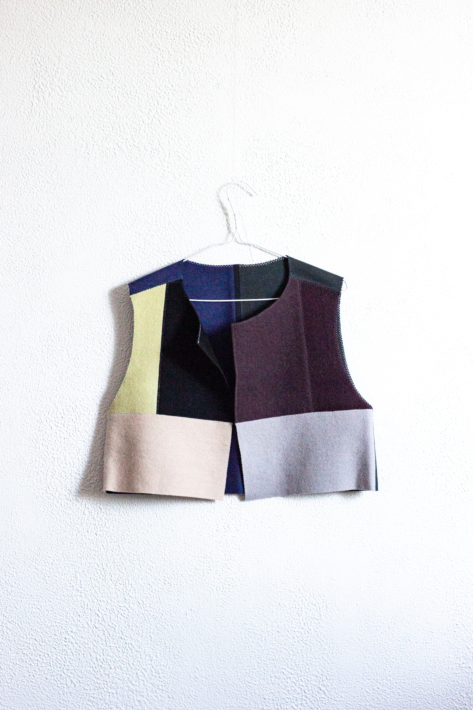 Handmade vest, made with textiles of different colors recovered from the famous design company: Kvadrat.
