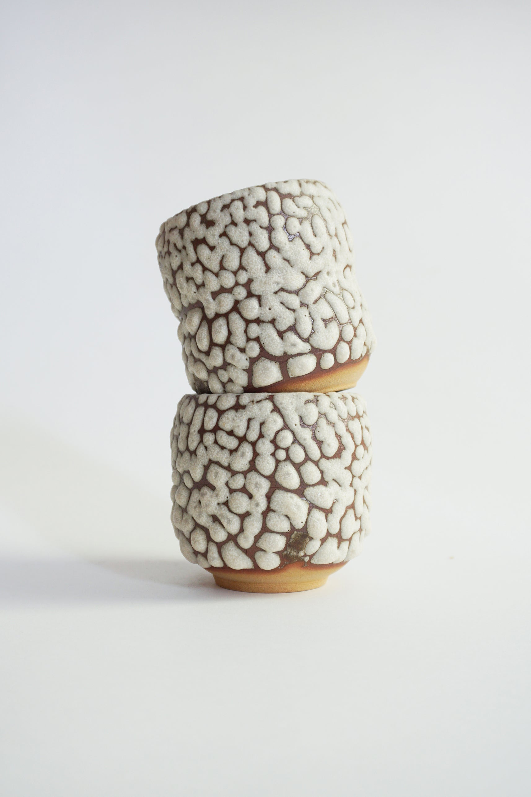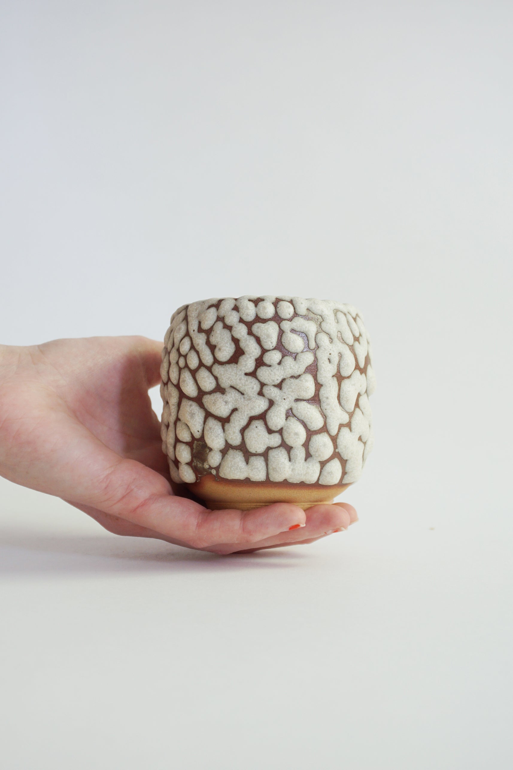 Impalpable cup in red stoneware, enameled with wood ash.
